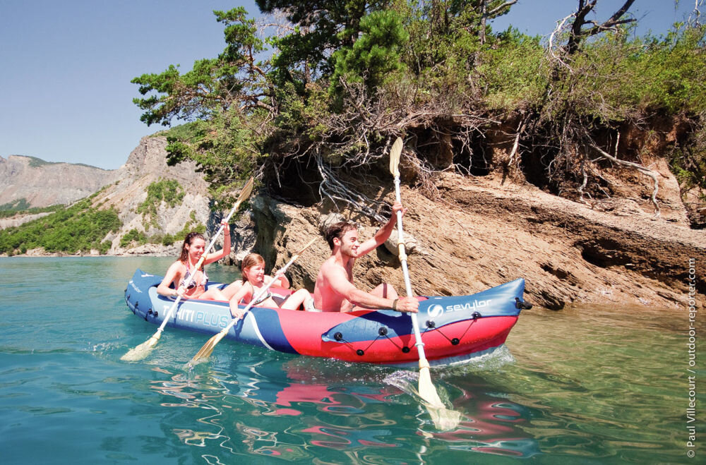 Kajak SEVYLOR Tahiti Plus to doskonały wybór dla 2 dorosłych osób i 1 dziecka na wycieczki po rzekach i jeziorach. Jest lekki, łatwo się pakuje i mieści w bagażniku samochodu. Konstrukcja kajaka obejmuje 2 boczne komory, wykonane z materiału PVC, system Back Pack System, uchwyty transportowe oraz zawory bostońskie. System łączy 3 zawory w 1, umożliwiając szybkie pompowanie i wypuszczanie powietrza ze wszystkich komór jednocześnie. Poziom ciśnienia można kontrolować bezproblemowo, a rozpoczęcie pływania jest szybkie i bezpieczne.