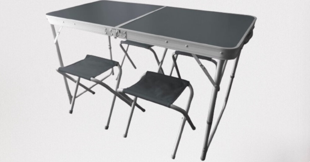 Zestaw mebli można łatwo złożyć i po złożeniu przyjmuje formę walizki, co sprawia, że jest łatwy do przechowywania, idealny na podróże campingowe czy pikniki. Składający się z 4 składanych taboretów i składanego stołu, zestaw 5-elementowy umożliwia elastyczne aranżacje przestrzeni i dostosowanie mebli do różnych potrzeb i sytuacji podczas spotkań na świeżym powietrzu.