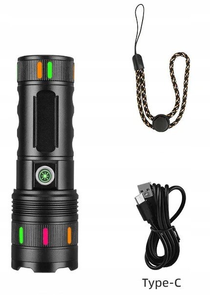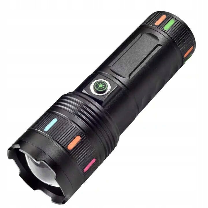 - Latarka wyposażona w nowoczesną laserową diodę PM10-TG Led, dzięki czemu dioda daje bardzo mocne światło