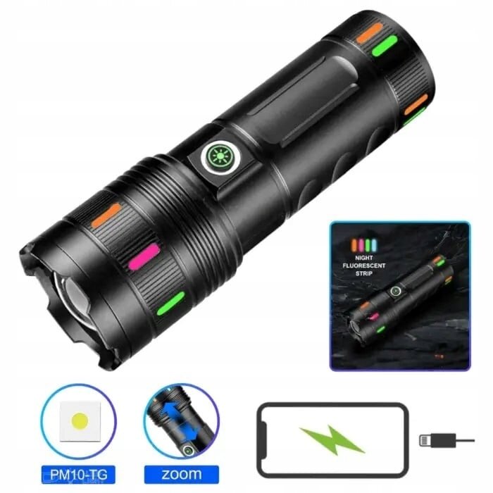 LATARKA Laserowa LED PM10-TG Taktyczna Mocna USB ZOOM POWERBANK 8951