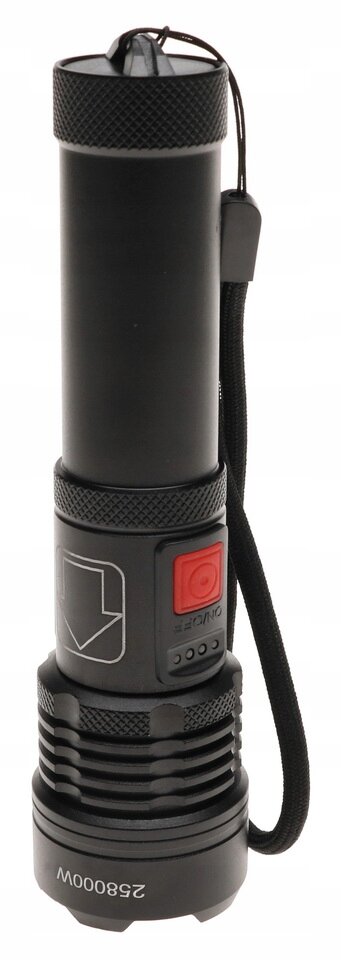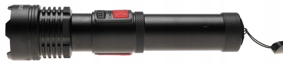 - Latarka wyposażona w nowoczesną technologię P90 LED, dzięki czemu dioda daje bardzo mocne światło