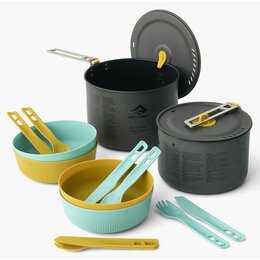 Zawartość opakowania: | 1 x czajnik, 1 x garnek, 1 x patelnia, 2 x karabińczyki, 2 x kubek, 2 x łyżka, 2 x nóż, 2 x pokrowiec do sztućców, 2 x pokrywka, 2 x widelec, Siatkowany worek |
