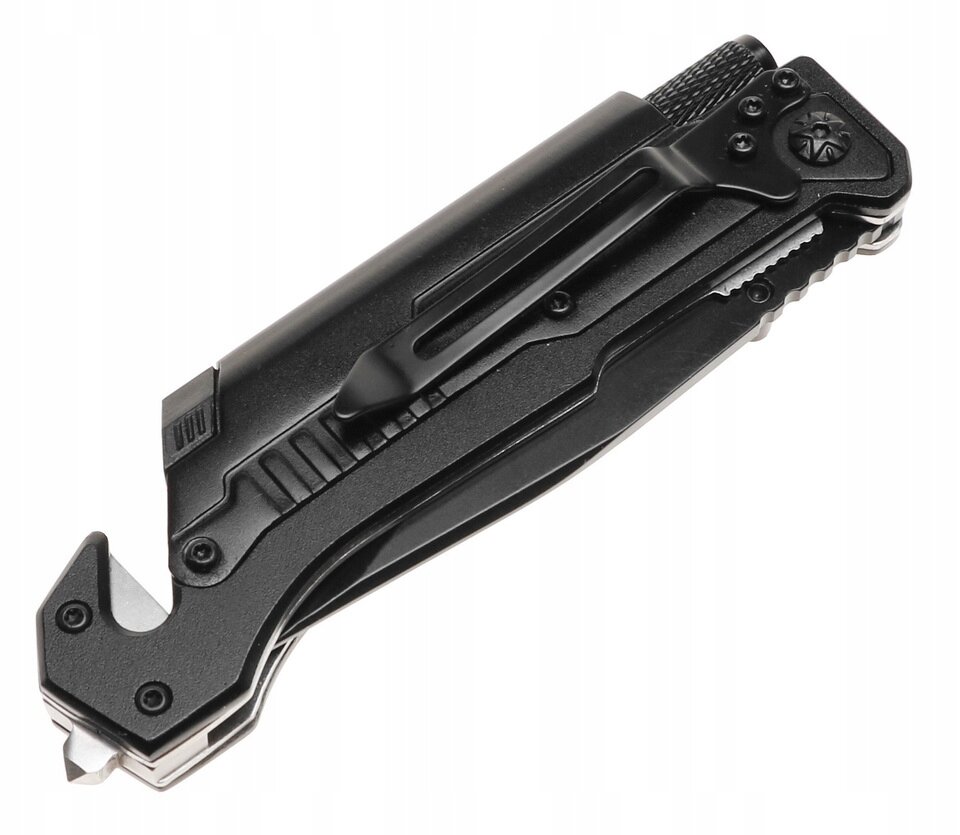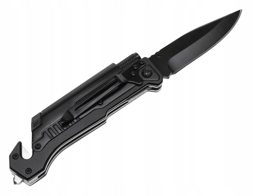 NÓŻ Składany Ratowniczy SURVIVALOWY Scyzoryk 5w1 Latarka Krzesiwo N305