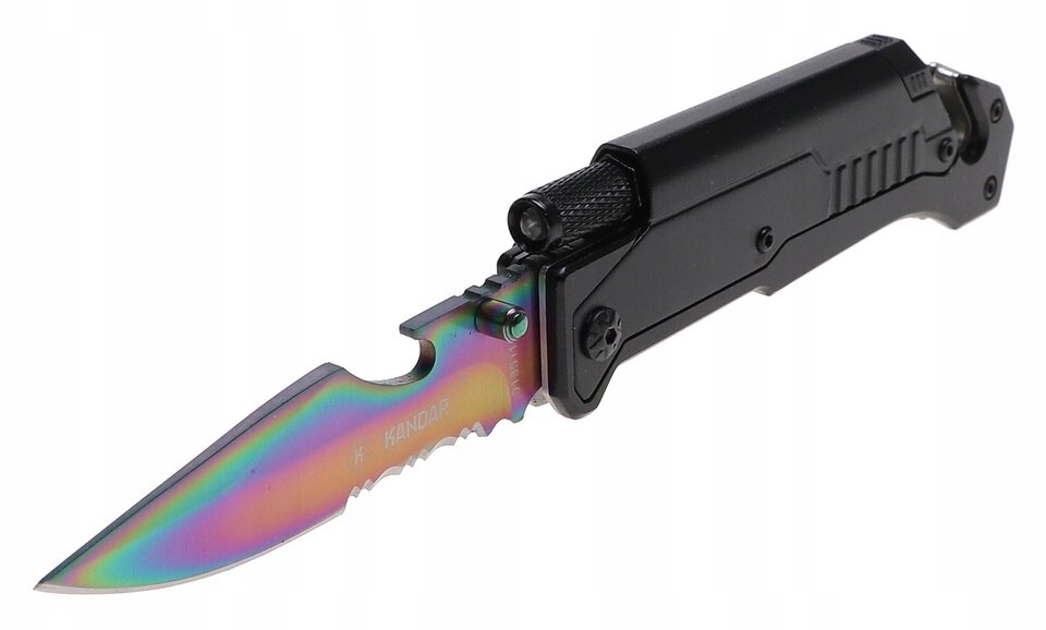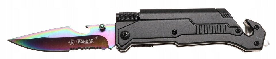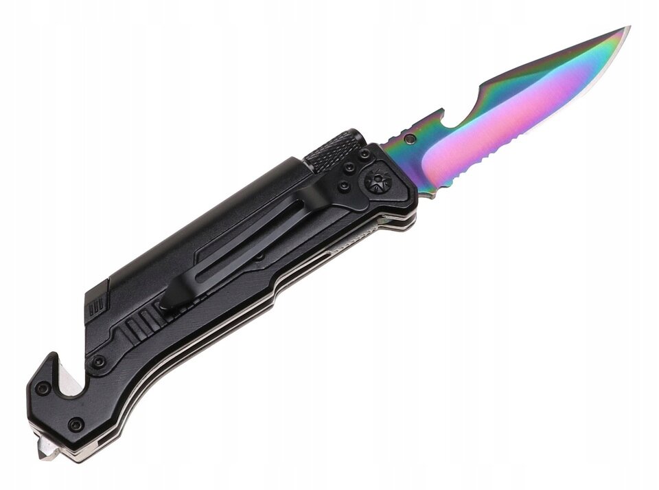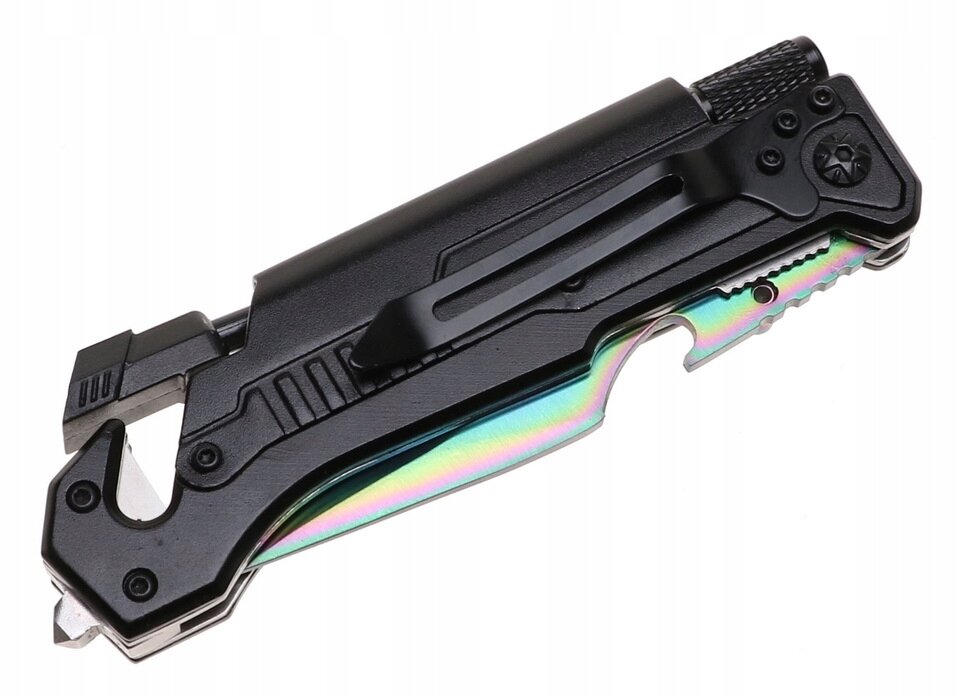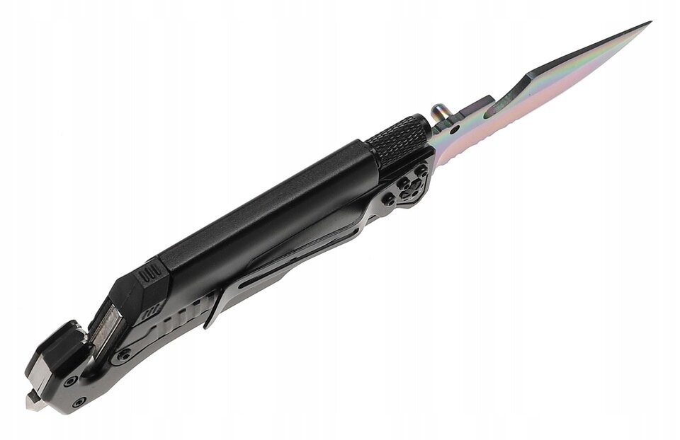 - NÓŻ Składany Ratowniczy SURVIVALOWY Scyzoryk 7w1 Latarka Krzesiwo N535