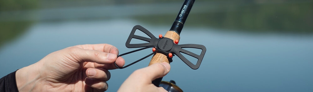 - Przymocuj uchwyt na smartfona do uchwytu wędki w taki sposób, aby logo Deeper znajdowało się z przodu.