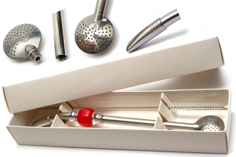 Oryginalna bombilla GAUCHO CEBAR Bola Red o długości 21 cm świetnie nadaje się do wszystkich rodzajów Yerba Mate. Bombilla została w całości wykonana ze stali Inox, dzięki czemu jest solidna, a do tego dobrze chłodzi napój. Odkręcane sitko o średnicy 2,8 cm doskonale filtruje yerbę, a całą bombillę możesz myć w zmywarce, więc łatwo utrzymać ją w czystości. Dodatkowo wyróżnia ją zdobienie w postaci dwóch pierścieni oraz czerwony kamień. Do bombilli dołączona jest praktyczna szczoteczka do czyszczenia.