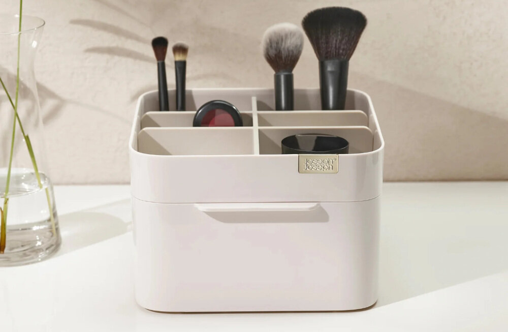 Uporządkowanie produktów kosmetycznych z organizerem JOSEPH JOSEPH jest bardzo proste, ponieważ zawiera on dużo małych i dużych przegródek. Dzięki temu można łatwo przechowywać w nim różne rodzaje kosmetyków, na przykład cienie do powiek, tusze do rzęs, pomadki, pudry, korektory, podkłady, a także akcesoria, takie jak pędzle czy temperówka do kredek.