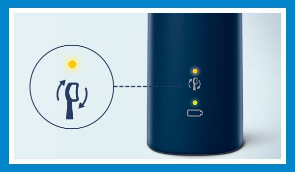 Ta oparta o mikrochip technologia oblicza zużycie włosia szczoteczki, które jest zależne od tego jak często, ale też jak mocno szczotkujesz zęby. Następnie poprzez ikonkę na rączce szczoteczki* przypomina o konieczności wymiany główki szczoteczki na nową.