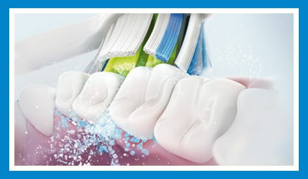 Technologia soniczna Philips Sonicare to połączenie wysokiej częstotliwości drgań i szerokiego zakresu ruchu włosia szczoteczki, które wytwarza Dynamiczną Akcję Czyszczącą (Dynamic Cleaning Action - DCA). Czyszcząca siła nawet do 62 000* ruchów szczoteczki na minutę nadaje dużą prędkość mieszaninie płynu (pasty i śliny) wytwarzając mikrobąbelki, a szeroki zakres ruchu włosia sprawia, że wtłaczane są one głęboko w przestrzenie międzyzębowe oraz wzdłuż linii dziąseł, zapewniając doskonałe czyszczenie nawet poza zasięgiem włosia.
