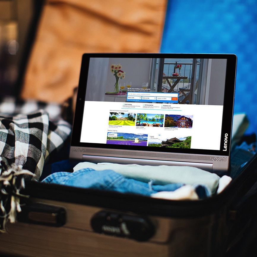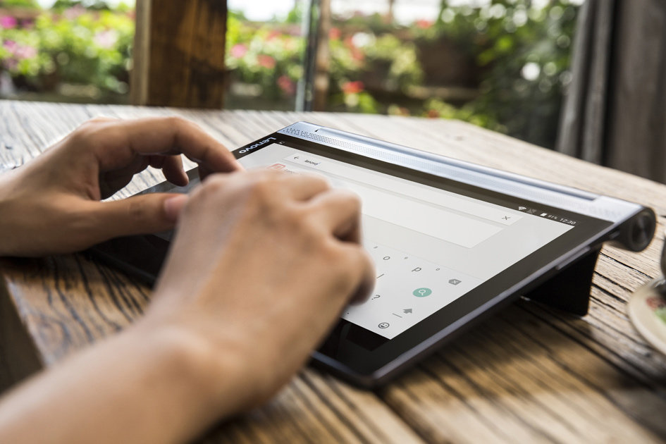 Lenovo YOGA Tab 3 Pro oferuje Ci aż 4 sposoby korzystania z urządzenia. Przewijanie przepisów podczas gotowania, sprawdzanie ulubionych kanałów tematycznych w trakcie jedzenia i oglądanie filmów podczas pracy na zewnątrz staje się prostsze dzięki zastosowaniu podstawki zintegrowanej z urządzeniem.