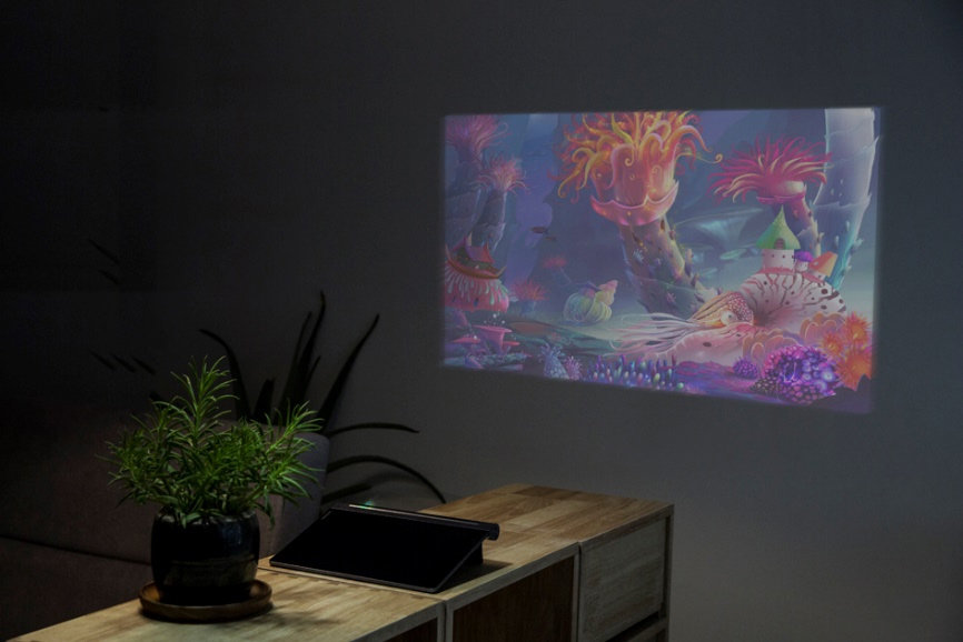 Kurtyna w górę! Poznaj pierwszy na świecie multimedialny tablet z wbudowanym projektorem wyświetlającym obraz do 70". Połóż go i zamień ścianę lub sufit w ekran kina domowego. Trzymaj w dłoni surfując po internecie. Postaw i rozmawiaj swobodnie. Powieś i zachwyć się obrazami na znakomitym ekranie QHD. Każdy dźwięk będzie teraz krystalicznie czysty dzięki 4 głośnikom JBL i technologii Dolby® Atmos™. Baw się i pracuj do 18 godzin na jednym naładowaniu baterii. Pozwól się porwać w niesamowity świat multimediów.