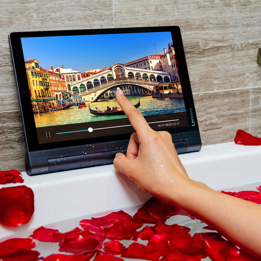 Znalazłeś wyjątkowy przepis w internecie? Zabierz go ze sobą do kuchni. Postaw YOGĘ Tab 3 Pro na stole lub powieś na ścianie i stań się prawdziwym szefem kuchni. Po tak wyjątkowej kolacji zrelaksuj się w kąpieli oglądając ulubiony film. Możesz być spokojny, Twoja YOGA jest odporna na zachlapania i nie boi się wody. Potwierdzeniem tego jest certyfikat IP21.