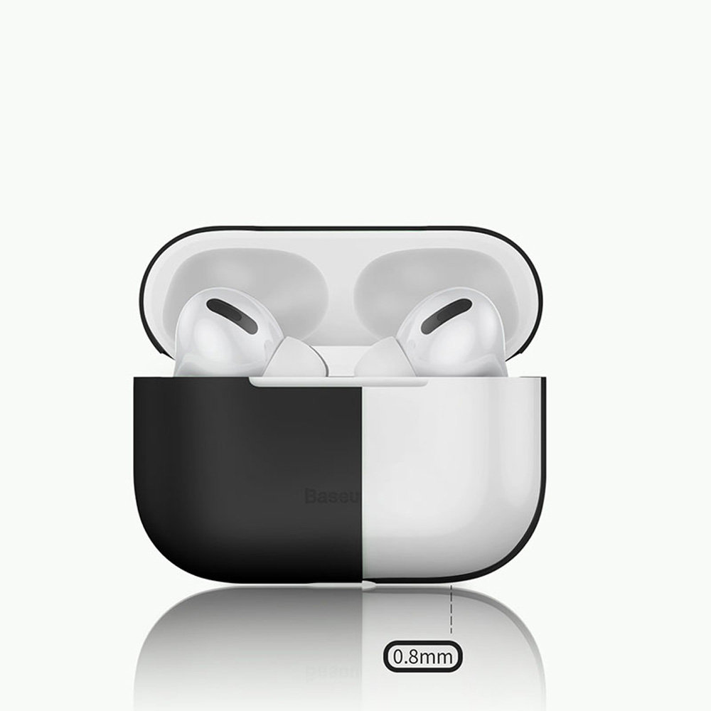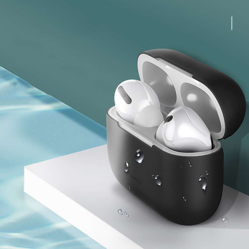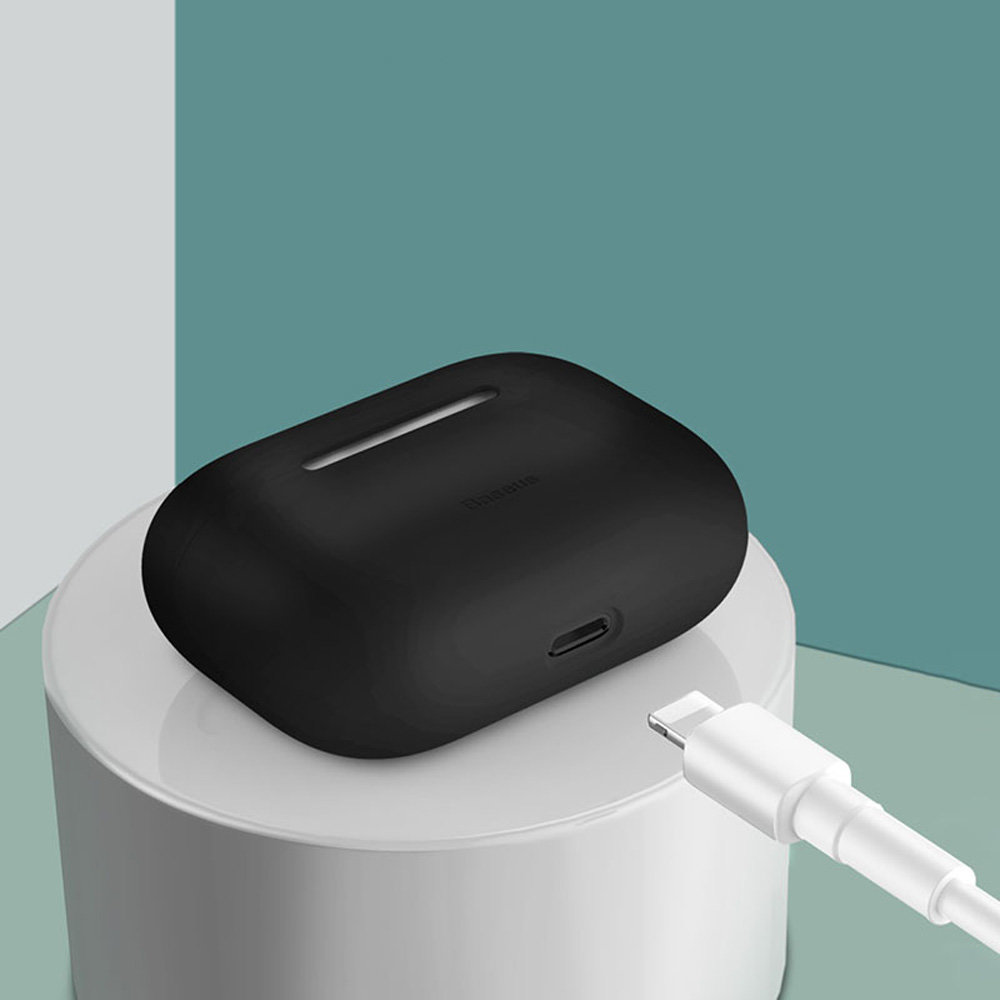 Etui na słuchawki AirPods PRO - to etui firmy BASEUS do bazy słuchawek AirPods PRO marki Apple. Case jest dwuczęściowy, dlatego góa nie blokuje zawiasu bazy przez co otwieranie przebiega bardzo sprawnie. Etui posiada wycięcia na diodę LED oraz gniazdo ładowania przez co nie musisz ściągać pokrowca aby podłączyć kabel. Wykonane z miłego w dotyku, bezpiecznego i wodoodpornego silikonu. Dzięki takiemu rozwiązaniu bardzo łatwo jest je wyczyścić. Sama budowa jest też bardzo cienka - zaledwie 0,8 mm nie pogrubia urządzenia nadając mu jednocześnie unikatowy styl i design
