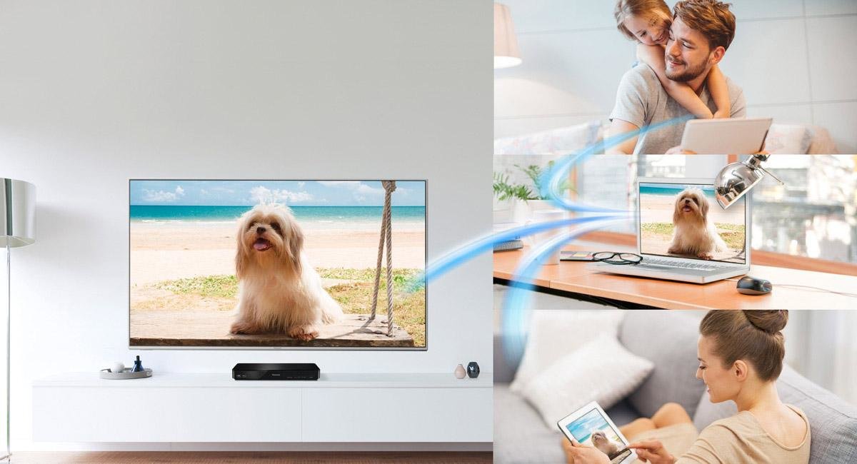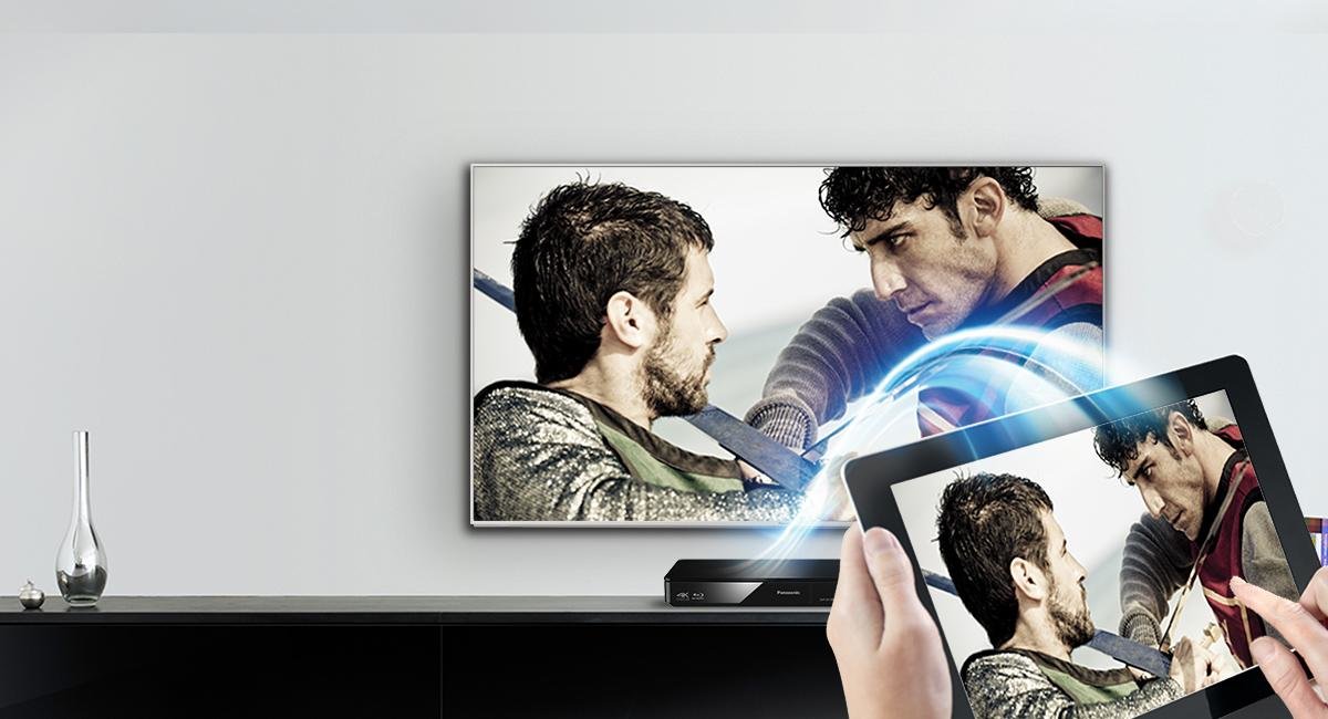 Funkcja Miracast dostępna w niektórych modelach odtwarzaczy Blu-ray firmy Panasonic na rok 2016 umożliwia łatwe odtwarzanie na telewizorze zdjęć i filmów zapisanych w smartfonie. Teraz możesz cieszyć się nimi wspólnie z najbliższymi. Co więcej, technologia ta zapewnia bezpośrednie połączenie Wi-Fi pomiędzy urządzeniami, przez co nie ma potrzeby korzystania z routera.