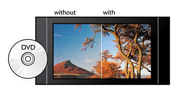 Zwiększanie rozdzielczości obrazu DVD do 1080p przez HDMI zapewnia obrazy o jakości zbliżonej do HD Funkcja zwiększania rozdzielczości do 1080p pozwala uzyskać krystalicznie czysty obraz. Filmy DVD w rozdzielczości standardowej można teraz oglądać w wysokiej rozdzielczości HD, która zapewnia bardziej szczegółowy i naturalny obraz. Funkcja bez przeplotu (oznaczona literą „p” w „1080”) eliminuje układ linii, występujący często na ekranie telewizora, zapewniając wyraźny obraz przez cały czas. Dodatkowo interfejs HDMI zapewnia bezpośrednie połączenie cyfrowe, które przenosi sygnał wideo HD oraz cyfrowy, wielokanałowy sygnał audio, nie dokonując ich konwersji na sygnały analogowe, co zapewnia idealną jakość obrazu i dźwięku oraz kompletny brak zakłóceń. |