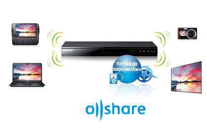Teraz możesz oglądać filmy, zdjęcia i słuchać muzyki z komputera i urządzeń przenośnych bezpośrednio na odtwarzaczu Samsung Blu-ray. Funkcja Samsung Samsung Link bezprzewodowo synchronizuje komputer i telefon komórkowy Samsung z odtwarzaczem Blu-ray. Przesyłaj strumieniowo zasoby, a nawet na bieżąco rozmawiaj przez telefon i komunikatory dzięki monitoringowi w czasie rzeczywistym na ekranie. Teraz dzięki funkcji Samsung Link pozostawanie w kontakcie jest jeszcze prostsze. * Kompatybilne urządzenia mogą się różnić w zależności od regionu.