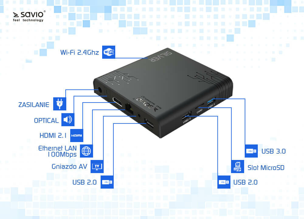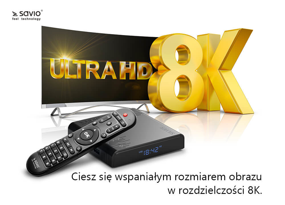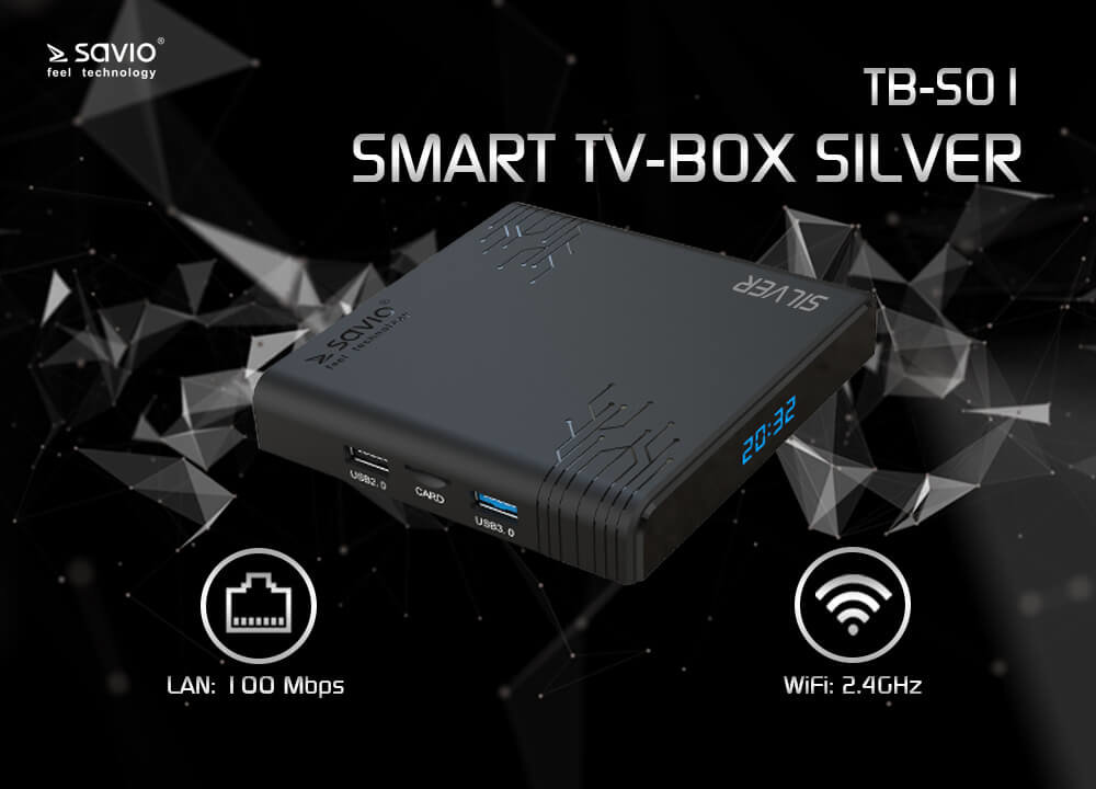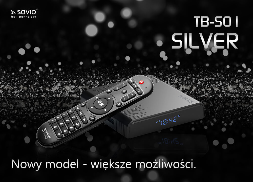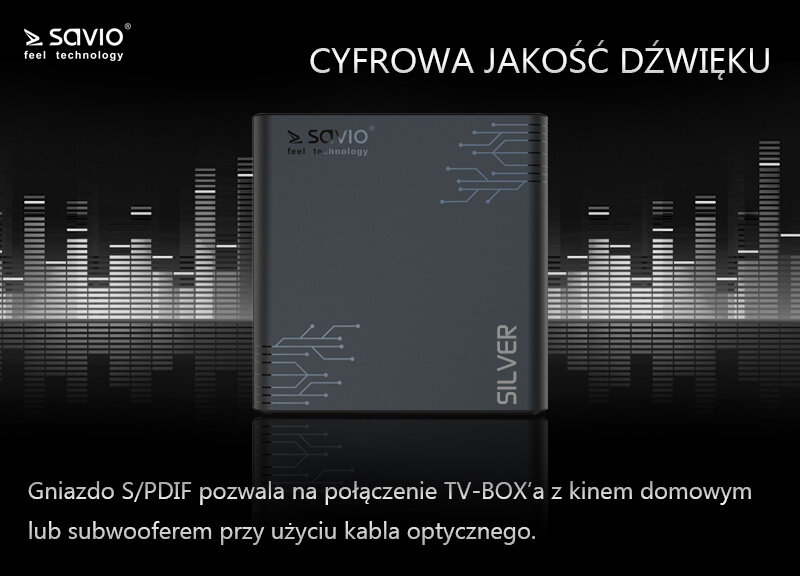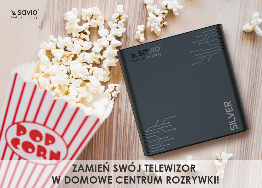 - Odtwarzacz multimedialny 4K SAVIO TV Box Silver TB-S01 Czarny