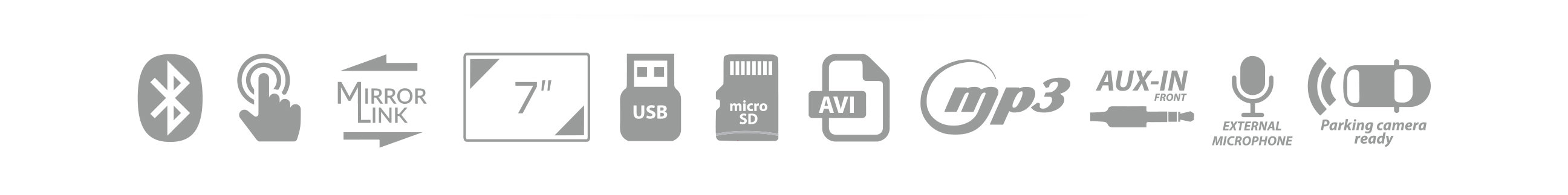 Radioodtwarzacz wyposażony jest w dotykowy wyświetlacz LCD o przekątnej 7” i rozdzielczości 800x480 pikseli, pełnowymiarowe gniazdo USB oraz microSD na przednim panelu. Radio posiada między innymi wejście na kamerę cofania. Aby zapewnić bezpieczeństwo podczas prowadzenia pojazdu, zamontowano moduł Bluetooth, który umożliwia prowadzenie rozmów bez konieczności odrywania rąk od kierownicy. Moduł obsługuje między innymi protokół A2DP, który pozwala na transmisję plików muzycznych z podłączonego smartfona.