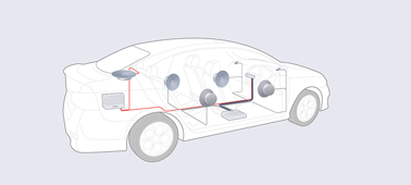 Fale dźwiękowe są kierunkowe — dźwięk głośników umieszczonych w drzwiach lub pod deską rozdzielczą może być nieczysty. Dynamic Stage Organiser reguluje sygnał i poprawia pozycjonowanie stereo, sprawiając, że muzyka niemal wypływa wprost z deski rozdzielczej. |