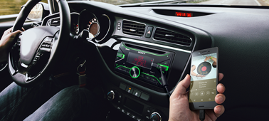 Podłączenie smartfona lub odtwarzacza muzycznego do złącza USB umożliwia odtwarzanie muzyki z aplikacji i łatwe sterowanie za pomocą telefonu. |