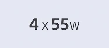 Wbudowany wzmacniacz o mocy 4 × 55 W × 4 (maks. przy 4 omach) / 4 × 20 W (RMS przy 4 omach) zapewnia dźwięk o niezwykle wysokiej głośności. |