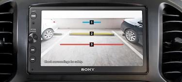 Jeśli nasz zainstalowaną kamerę cofania, możesz skorzystać z niej, aby ułatwić sobie parkowanie. Za każdym razem, gdy dotkniesz ikonę kamery cofania lub włączysz bieg wsteczny, na ekranie pojawi się widok z kamery. Linie pomocnicze ułatwiają płynne i bezpieczne cofanie. |
