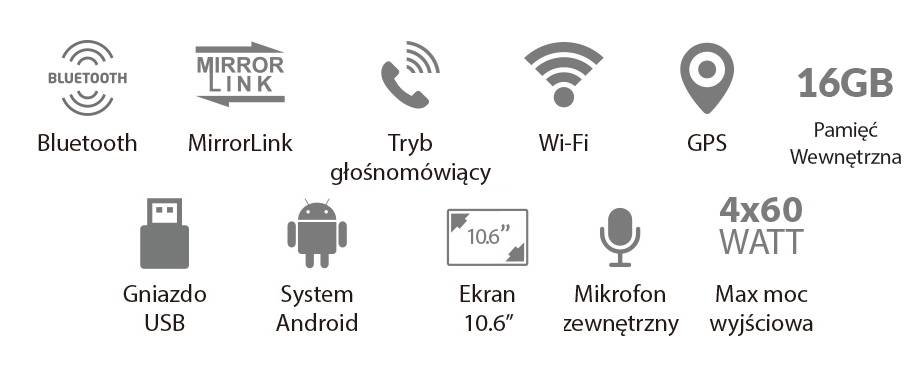 MirrorLink za pomocą kabla USB pozwala na kopiowanie ekranu smartfonu z systemem Android lub iOS. Dzięki temu możemy zobaczyć to samo co w telefonie na radioodtwarzaczu np. program nawigacyjny GPS, odtwarzacz muzyki, książka telefoniczna i klawiatura.