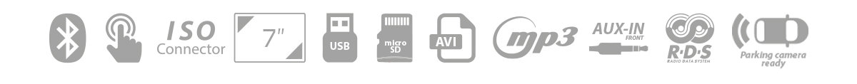 Radioodtwarzacz wyposażony jest w dotykowy wyświetlacz LCD o przekątnej 7” i rozdzielczości 800x480 pikseli, pełnowymiarowe gniazdo USB oraz microSD na przednim panelu. Radio posiada między innymi wejście na kamerę cofania. Aby zapewnić bezpieczeństwo podczas prowadzenia pojazdu, zamontowano moduł Bluetooth, który umożliwia prowadzenie rozmów bez konieczności odrywania rąk od kierownicy. Moduł obsługuje między innymi protokół A2DP, który pozwala na transmisję plików muzycznych z podłączonego smartfona.