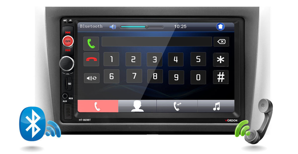 Radio samochodowe VORDON HT-877BT BLUETOOTH 2DIN USB SD AUX MP3 EKRAN Pilot