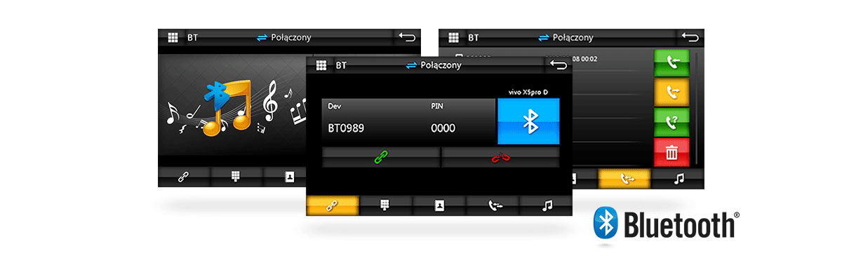 Radio posiada wbudowany Bluetooth, co pozwala na prowadzenie rozmów podczas jazdy samochodem. Dźwięk z telefonu będzie słyszany w głośnikach, natomiast zewnętrzny mikrofon dołączony do zestawu pozwoli na prowadzenie rozmowy bez odrywania rąk od kierownicy. Urządzenie synchronizuje książkę telefoniczną z telefonem, zapamiętuje historię połączeń, oraz posiada funkcję automatycznego odbierania połączeń. Po pierwszym sparowaniu smartfona, urządzenie automatycznie łączy się z telefonem. Protokół A2DP pozwala na bezprzewodowe odtwarzanie muzyki z telefonu.