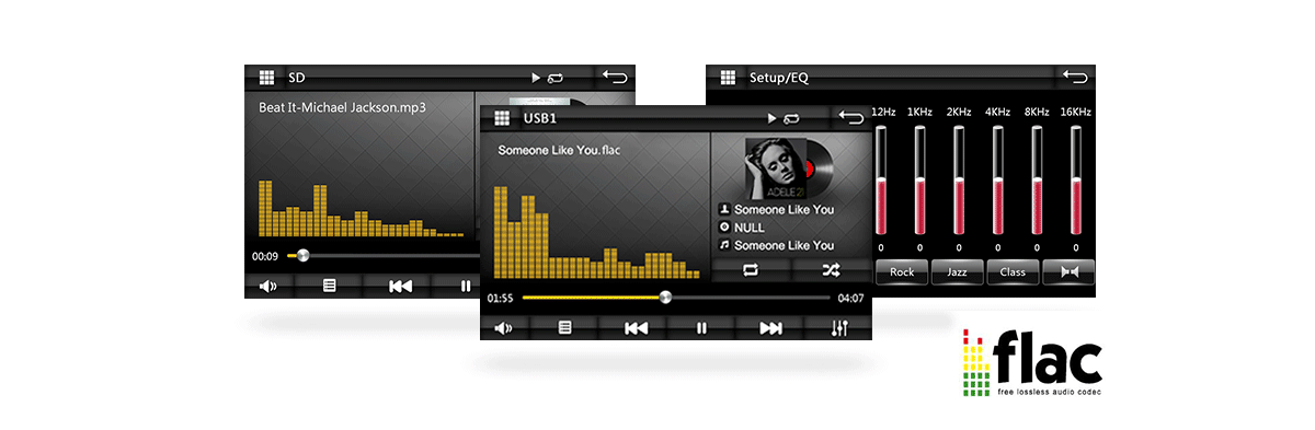 Urządzenie posiada zintegrowany odtwarzacz audio, umożliwiający odtwarzanie muzyki np. z karty microSD oraz możliwość współpracowania z innymi urządzeniami przez połączenie Bluetooth. Urządzenie obsługuje m. in. MP3 / WMA / WAV / APE / AAC oraz FLAC, który jest kodekiem umożliwiającym bezstratną kompresję cyfrowego dźwięku. W przeciwieństwie do innych kodeków, nie usuwa żadnych danych ze strumienia audio, pozostawiając dźwięk wierny oryginałowi. 10-pasmowy korektor umożliwia dostosowanie brzmienia do własnych preferencji lub wybranie z predefiniowanych trybów Flat, Pop, Rock, Jazz, Klasyczny.