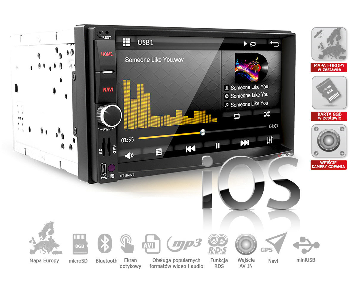 Radioodtwarzacz wyposażony jest w dotykowy wyświetlacz LCD o przekątnej 7” i rozdzielczości 800x480 pikseli, wejście miniUSB oraz microSD na nośniki danych, moduł GPS z zainstalowaną mapą Europy MapFactor Navigator. Radio posiada między innymi wejście na kamerę cofania. Aby zapewnić bezpieczeństwo podczas prowadzenia pojazdu, zamontowano moduł Bluetooth, który umożliwia prowadzenie rozmów bez konieczności odrywania rąk od kierownicy. Moduł obsługuje między innymi protokół A2DP, który pozwala na transmisję plików muzycznych z podłączonego smartfona. Poprzez połączenie smartfona z radiem kablem USB, radio aktywuje funkcję MirrorLink - która kopiuje ekran smartfona, na radioodtwarzacz. Urządzenie posiada moduł który pozwala podłączać telefony z systemem IOS które jest świetnym rozwiązaniem dla posiadaczy iPhone czy innych urządzeń Apple. Obsługuje również Androida.