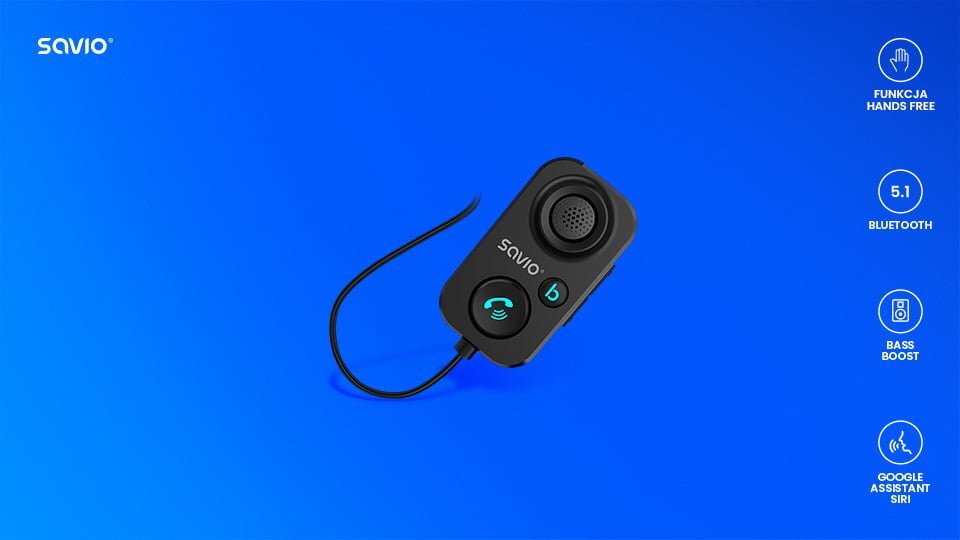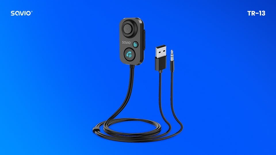 Transmiter AUX z funkcją zestawu głośnomówiącego SAVIO TR-13 to wielofunkcyjne urządzenie wyposażone w Bluetooth 5.1. Zastosowany chipset umożliwia bezprzewodowe odtwarzanie muzyki stereo w doskonałej jakości, a połączenie funkcji zestawu głośnomówiącego z wysokiej klasy mikrofonem gwarantuje najlepszą jakość podczas rozmów. Transmiter dodatkowo został wyposażany w funkcję Bass Boost, a także wsparcie dla usług Google Assistant oraz Siri. Savio TR-13 zwiększa możliwości urządzeń ze złączem AUX-in o technologię Bluetooth 5.1