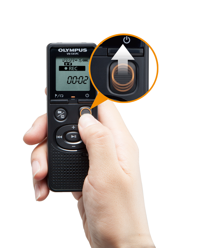 Gotowy do natychmiastowego dyktowania. Przesuń przełącznik REC —