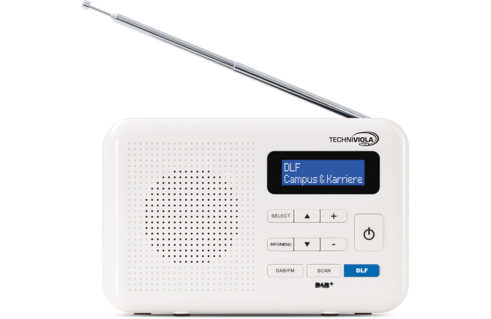 TechniViola DiRa 1 to przenośne radio w kolorze białym. Dwuwierszowy wyświetlacz LCD, pierwszorzędna jakość dźwięku i doskonałe wykonanie to tylko niektóre z zalet. Automatycznie wyszukasz stacje radiowe i możesz zapisać 10 Twoich ulubionych. Możesz używać go w domu oraz w podróży (baterie).