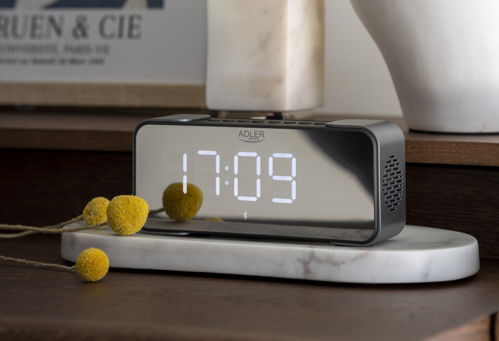 Radiobudzik ADLER AD 1190 Srebrny Radio FM, kabel USB-A/USB-C, kabel AUX, dokumentacja.