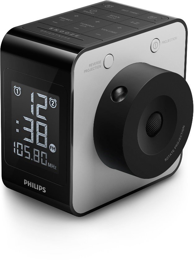 Zestaw audio firmy Philips został wyposażony w możliwość ustawienia podwójnego alarmu. Ustaw jedną godzinę alarmu, aby się obudzić, zaś drugą — aby obudzić partnera lub partnerkę. Wyświetlanie czasu Wyświetlanie czasu umożliwia jego projekcję na dowolnej powierzchni pod dowolnym kątem. Ten nowatorski system projekcji sprawia, że wyświetlany czas jest zawsze ustawiony w dobrym kierunku. Projekcyjny wyświetlacz LCD różni się od tradycyjnych wyświetlaczy tym, że światło mitowane przez silną diodę przechodzi przez niego bez większych zniekształceń, rzucając obraz na pewną odległość. W zegarze można nawet regulować ostrość projekcji, posługując się obiektywem, przez który jest rzucany obraz. Nie trzeba wstawać, by zobaczyć, która jest godzina — wystarczy otworzyć oczy! Duży wyświetlacz LCD z podświetleniem Podświetlany wyświetlacz LCD zapewnia łatwy odczyt informacji i umożliwia obsługę urządzenia przy słabym świetle. |
