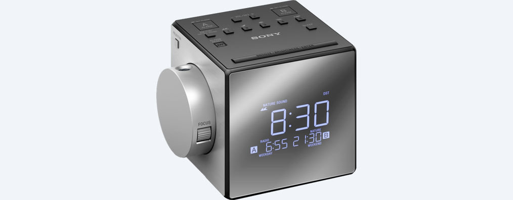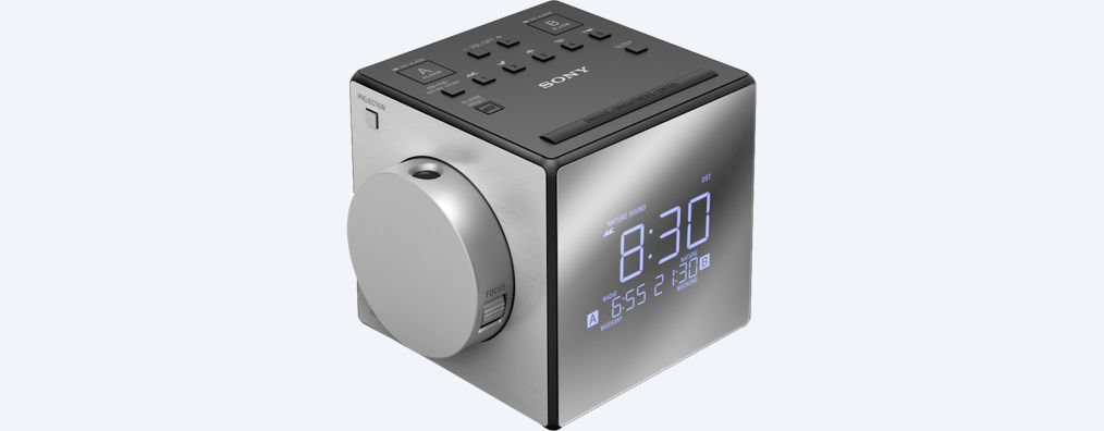 Ten radiobudzik umożliwia projekcję godziny na ścianę albo sufit. Dzięki regulacji kąta i ostrości wskazanie godziny znajduje się zawsze we właściwym miejscu i jest doskonale widoczne. Tuner cyfrowy Ręczne nastawianie stacji radiowych nie jest wygodne. Tuner cyfrowy umożliwia szybkie nastawianie ulubionych stacji radiowych i zaprogramowane 10 z nich w pamięci (FM: 5 i AM: 5). |