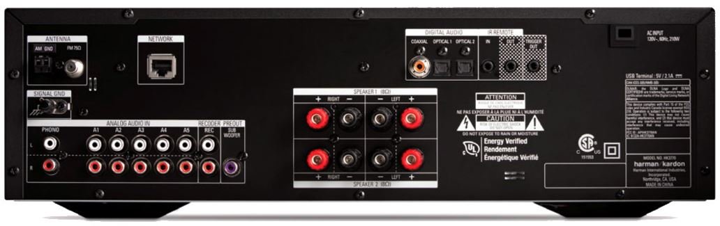 Na przednim panelu umieszczono port USB, za pomocą którego można zyskać bezpośrednie połączenie z urządzeniami przenośnymi Apple iPod, iPad i iPhone oraz z pamięciami przenośnymi. Wzmacniacz w tej kwestii oferuje wsparcie dla popularnych formatów audio MP3, WMA i WAV. Ponadto dostępny jest też port LAN do przewodowego podłączenia internetu, co daje możliwość strumieniowego odtwarzania mediów w standardzie DLNA oraz odsłuchu stacji radia internetowego vTuner. |