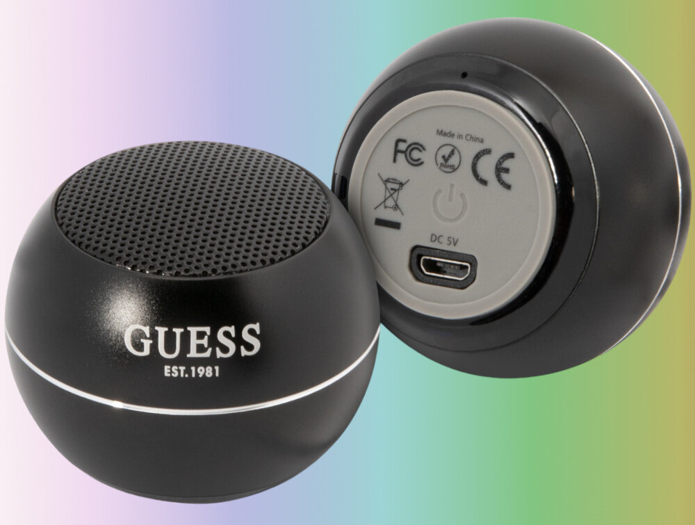 Kompaktowy głośnik bezprzewodowy GUESS Speaker Mini to stylowe urządzenie z aluminium, wyposażone w Bluetooth 5.0, umożliwiające odtwarzanie muzyki, prowadzenie rozmów i zapewniający czysty i głęboki dźwięk.
