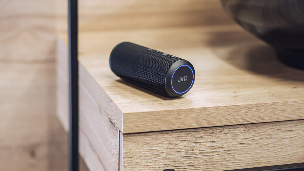 Całkowita moc głośnika wynosi 24 W. Gdy dostępne są dwa głośniki JVC XS-E322B, można je sparować za pomocą funkcji TWS — True Wireless Stereo. Wtedy oba głośniki będą jednocześnie odtwarzać dźwięk z jednego urządzenia, podzielonego na kanał lewy i prawy.
