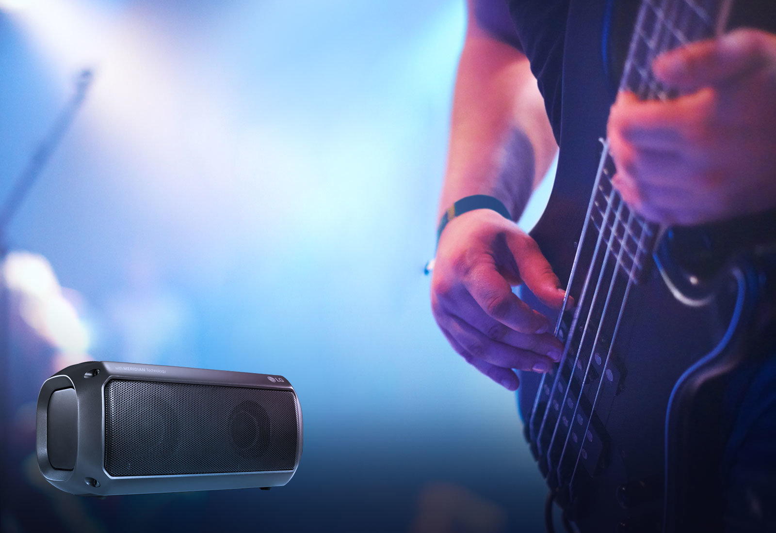 Aby zapewnić jeszcze większą wszechstronność, przenośny głośnik LG jest wyposażony w technologię Bluetooth z wbudowanym akumulatorem, dzięki czemu można go cieszyć w dowolnym miejscu. |