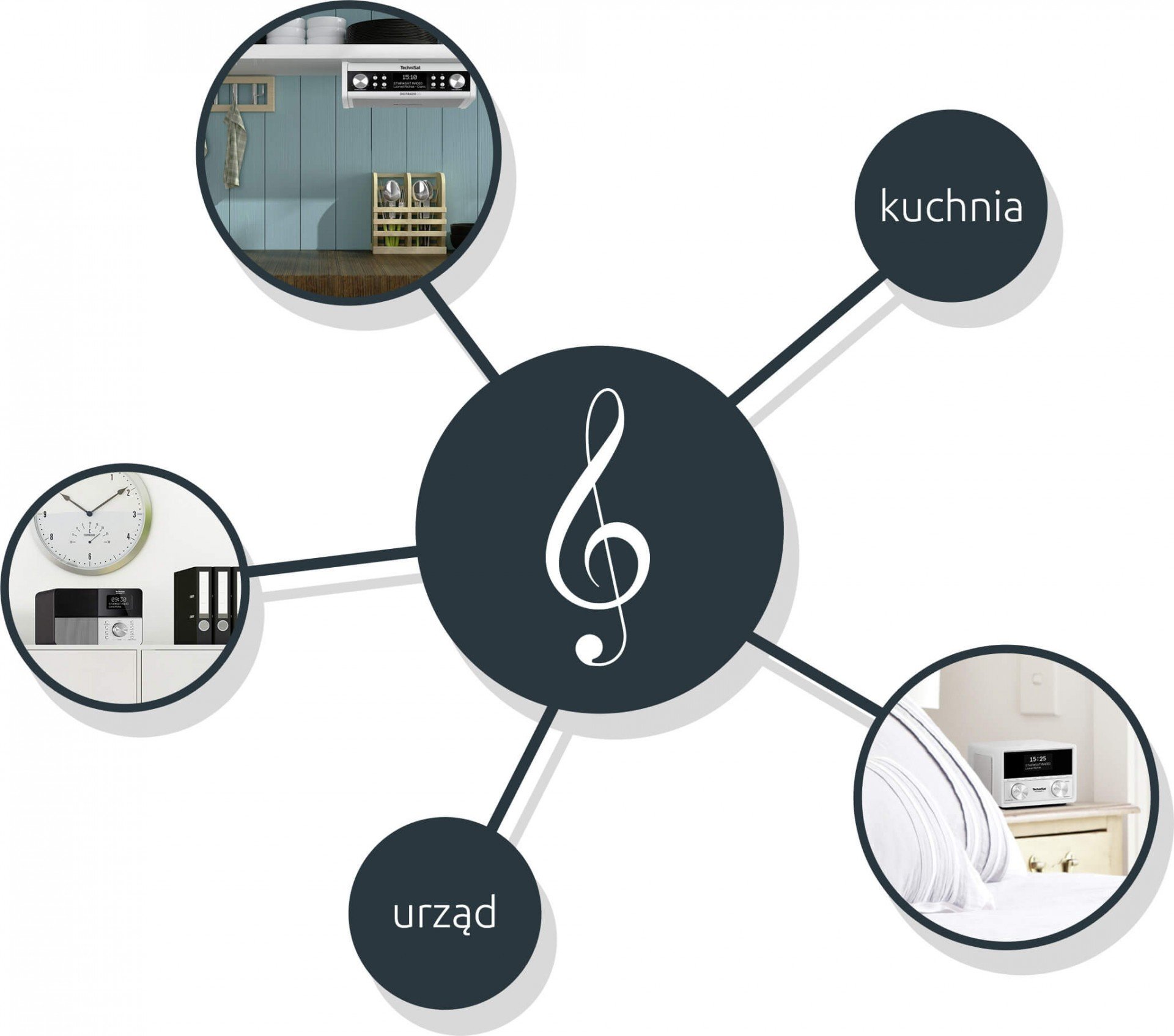 Z funkcją stremowania audio - Multiroom, możecie Państwo połączyć radia i głośniki w sieć współpracujących urządzeń. Tak utworzone grupy umożliwiają jednoczesne odtwarzanie ulubionej muzyki w całym domu. |