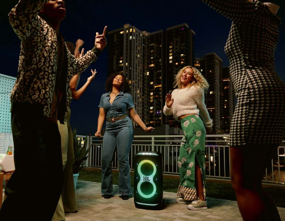 Innowacyjna technologia AI Sound Boost analizuje sygnał w czasie rzeczywistym, dostosowując parametry głośnika, aby uzyskać jak najlepszą jakość dźwięku. Sparuj dwa głośniki w system stereo, aby uzyskać jeszcze szerszą scenę dźwiękową, lub połącz wiele głośników JBL PartyBox przy użyciu Auracast. Dzięki aplikacji mobilnej JBL PartyBox możesz dodawać interaktywne efekty imprezowe, dostosowywać korektor dźwięku i kontrolować światła, aby stworzyć idealny klimat imprezy.