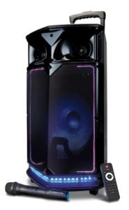 Podczas zabawy utwory można zmieniać pilotem zdalnego sterowania (znajduje się w zestawie) lub smartfonem. Produkt odbiera sygnał Bluetooth w promieniu 10 metrów. Jest on także wyposażony w gniazda USB, SD, MMC oraz wejścia na mikrofon, gitarę i jedno pomocnicze. Dzięki temu można stworzyć ciekawą oprawę muzyczną na rożne okazje i z różnym sprzętem. Emitowany sygnał da się też nagrać na USB, co pozwoli uwiecznić występ. Zestaw ma opcję Super Bass, pozwalającą uwydatnić dolne rejestry, a także efekt echo mikrofonu. |