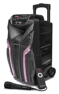 Słuchaj muzyki tam, gdzie chcesz Prezentowany głośnik to niezbędne wyposażenie dla tych, którzy lubią urządzać imprezy w każdym możliwym miejscu – również najbardziej nietypowym! Można go wszędzie ze sobą zabrać, ponieważ mierzy zaledwie 30 x 30 x 53,5 cm oraz został wyposażony w uchwyt i kółka, pozwalające na transport w taki sam sposób, jak wygodne walizki podróżne. Waga produktu to tylko 7,2 kg. Martwicie się o zasilanie w plenerze? Nie ma powodu! Głośnik posiada wbudowaną baterię, która może pracować nawet do 4 godzin od pełnego naładowania. |