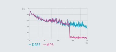 Wyższa jakość dźwięku z poddanych kompresji plików muzycznych. Stosowanie kompresji usuwa z dźwięku składowe o wysokich częstotliwościach stanowiące o szczegółowości i bogactwie muzyki. System DSEE (Digital Sound Enhancement Engine – system cyfrowego wzbogacania dźwięku) przywraca te składowe, dzięki czemu brzmienie utworów staje się zbliżone do pierwotnego nagrania CD. |