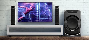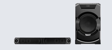 Trójdrożny, 2.1-kanałowy zestaw głośników generuje pełnozakresowy dźwięk o dużej mocy. 35-centymetrowy subwoofer jest wystarczająco duży, by reprodukować mocny bas. Głośnik w formie listwy zawiera cztery jednostki głośnikowe o średnicy 8 cm oraz dwie 4-centymetrowe jednostki wysokotonowe, które zapewniają czyste partie wokalne i szczegóły muzyczne. |