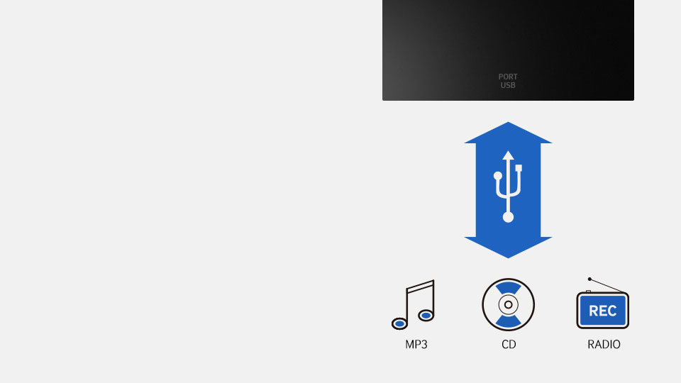 | Wejście USB EZ MP3 Maker pozwoli Ci szybko zgrać zawartość płyt CD do wysokiej jakości plików MP3, a Radio Recording Timer zapisać w postaci cyfrowej ulubioną audycję radiową. Aby skorzystać funkcji MP3 wystarczy podłączyć do mikrowieży zewnętrzny nośnik pamięci USB. |