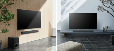 Konfiguracja według preferencji Smukła rama HT-CT800 płynnie wtapia się w resztę zestawu kina domowego —doskonała do montażu na ścianie lub umieszczenia na podstawie telewizora.